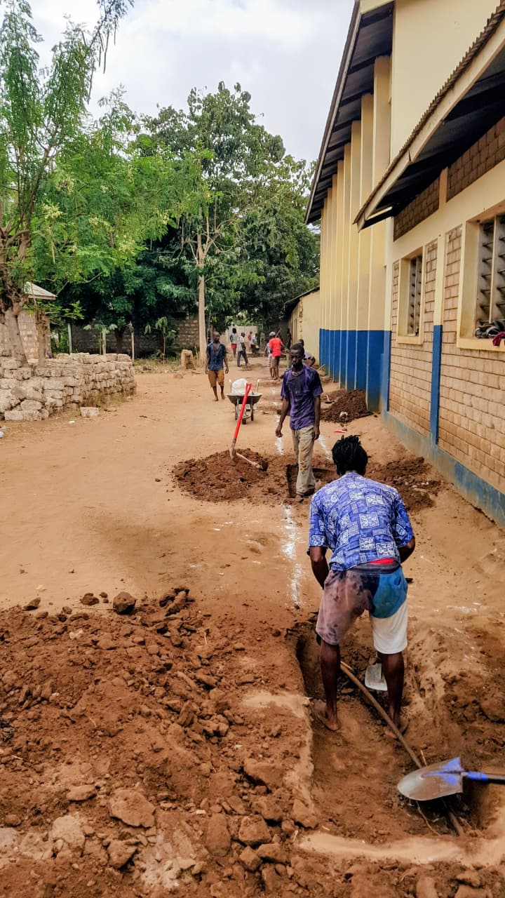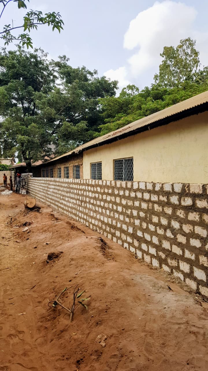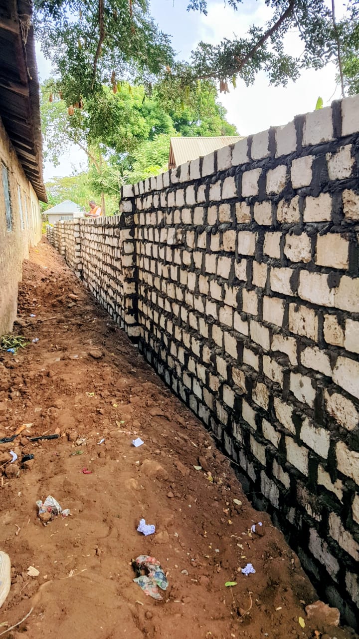 Ein weiteres Projekt ist erfolgreich abgeschlossen: Das bisher weitgehend offene Schulgelände wurde durch den Bau einer Mauer gesichert. Zuvor gingen und fuhren dort Passanten und Fahrzeuge ungehindert ein und aus – eine Situation, die für die Kinder weder ruhig noch sicher war.