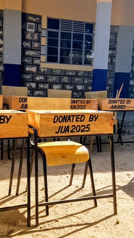 In den letzten zehn Jahren hat sich die Zahl der Schülerinnen und Schüler der Airport Comprehensive School nahezu verdoppelt – von 886 im Jahr 2016 auf heute über 1.600. Ein sehr erfreuliches Zeichen, das die Schule jedoch auch vor große Herausforderungen stellt. Es fehlt an Räumen, Tischen und Stühlen, viele Klassen sind mit über 60 Kindern belegt, teilweise sitzen die Lernenden sogar vor den überfüllten Klassenräumen. Mit einer Spende von 50 Tischen und Stühlen konnten zusätzliche Sitz- und Lernmöglichkeiten geschaffen werden. Dadurch stehen mehr Schülerinnen und Schülern feste Arbeitsplätze zur Verfügung, was den Unterrichtsalltag erleichtert und die Lernbedingungen in diesem Bereich weiter stärkt.