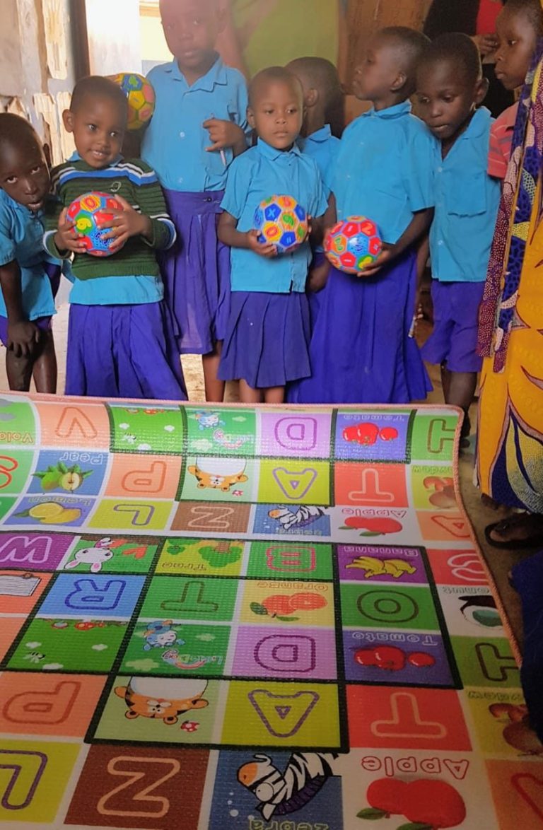 Bisher schliefen die Jüngsten im Kindergarten mittags auf Strohmatten auf dem Fußboden. Dank Ihrer Spenden war es möglich, der Kindergartengruppe einen farbenfrohen Teppich und mehrere bunte Bälle zur Verfügung zu stellen. Ein kleiner Farbklecks, der für große Freude sorgt.